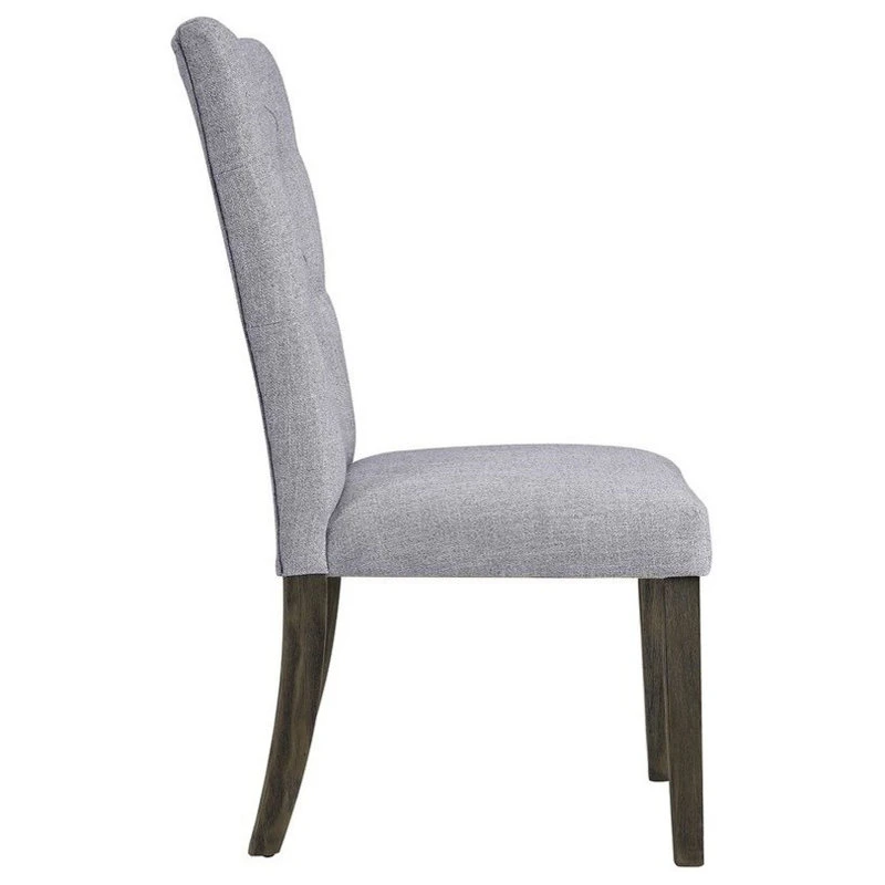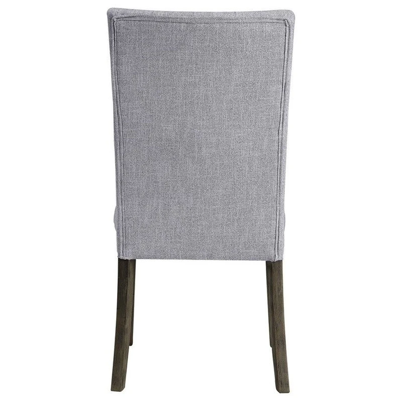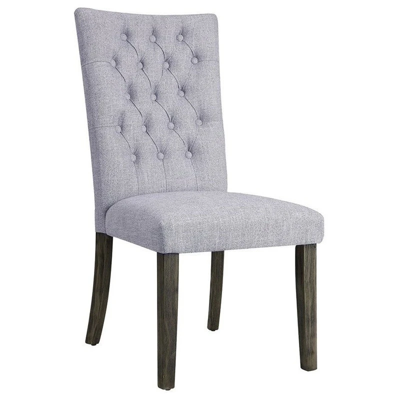 Attract attention to your dining room with the Merel side chair. Featuring a stunning button tufted gray backrest and classic gray oak finish wood legs, this chair is both durable and stylish, complementing your contemporary home decor theme while guaranteeing to withstand the wear and tear of daily use for years to come. Warmed with a gray oak finish this sturdy armless chair has beautifully tapered wood legs. A striking mix of natural materials this unique chair will provide comfortable seating for all of your guests.