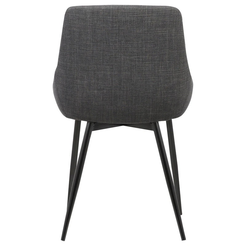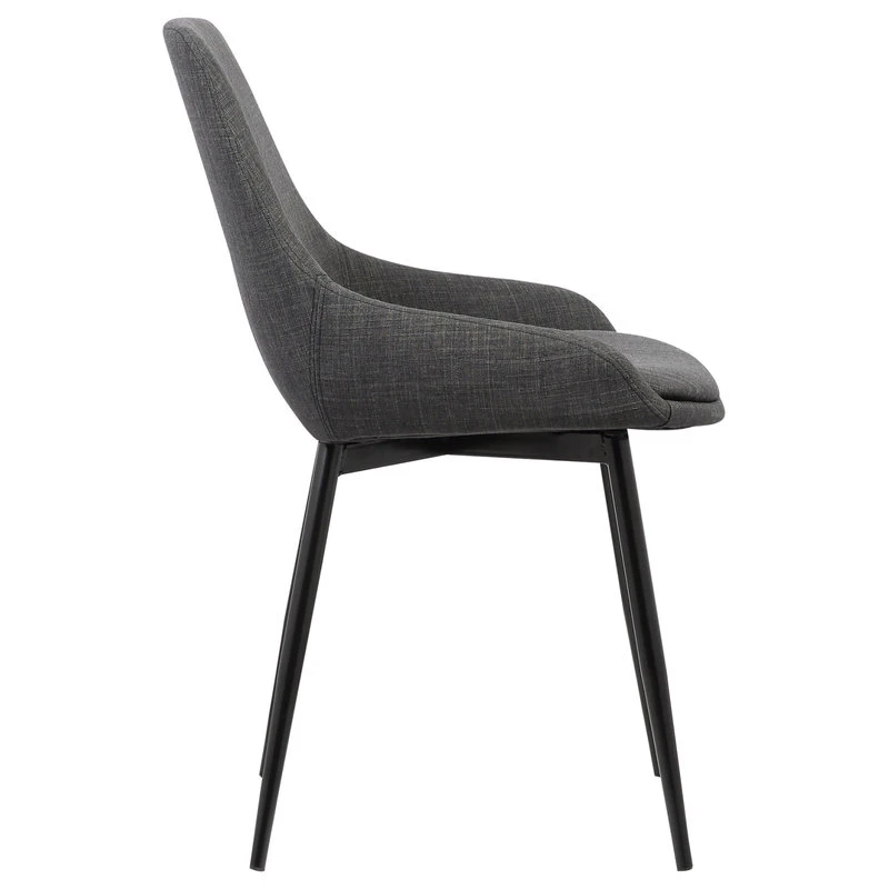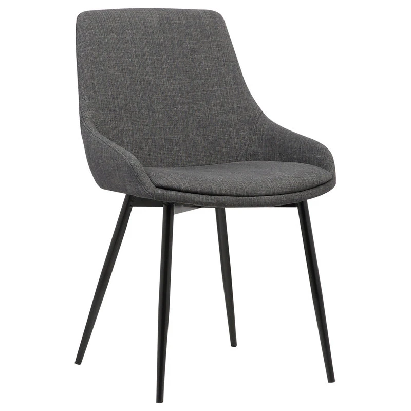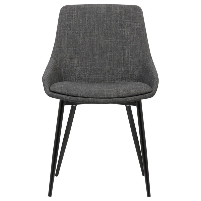 The Armen Living Mia contemporary dining chair is a practical yet stylish addition to any contemporary dining room arrangement. The seat is made of a sturdy frame covered with an exquisite fabric while the legs are made of a sturdy yet stylish black metal. The Mia chair comes in two exceptional color choices: charcoal and gray.