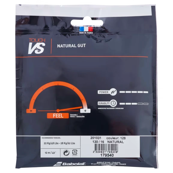 You want the best? Babolat Touch VS natural gut tennis string offers the best comfort, power, and feel of any string, while holding tension and being easy on your arm. With more than 100 grand slam victories, you’ll fall in love with the playability of Touch VS as you experience what makes Touch VS natural gut the reference for all tennis strings. Made in France.