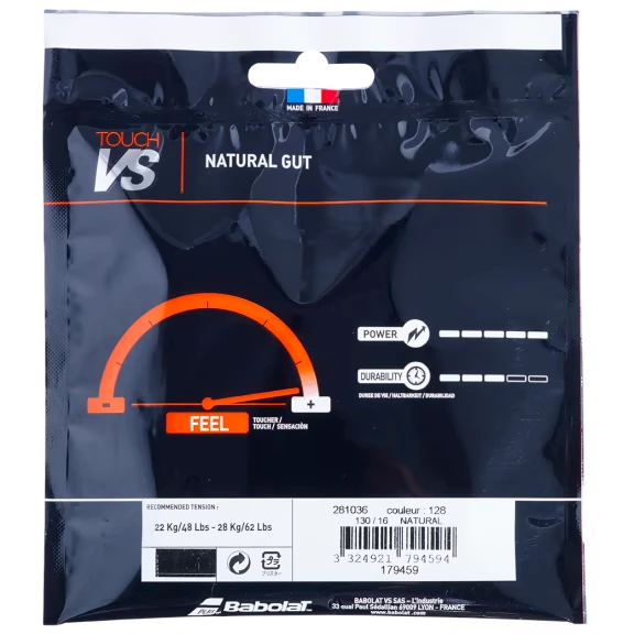 You want the best? Babolat Touch VS natural gut tennis string offers the best comfort, power, and feel of any string, while holding tension and being easy on your arm. With more than 100 grand slam victories, you’ll fall in love with the playability of Touch VS as you experience what makes Touch VS natural gut the reference for all tennis strings. Made in France.