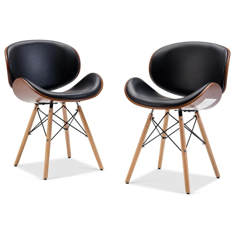 A blend of classic and fashion is brought together with this versatile and mid-century style accent chair. Finished with classic bonded leather, this four-legged accent chair is great for living room, office, dining room or any other spaces. Featuring gorgeous curved look, bent wood and sturdy metal frame, this beauty will last for years.