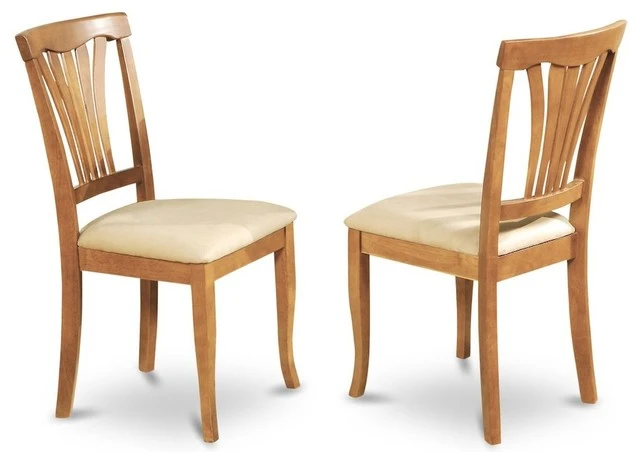 Avon Chair With Cushion Seat – Oak Finish. dining room chairs created from all very solid Asian wood. No MDF, heat treated wood, particle aboard or venner used. Includes a vertical slatted back. Gently arced chair back features graceful carving. Asse