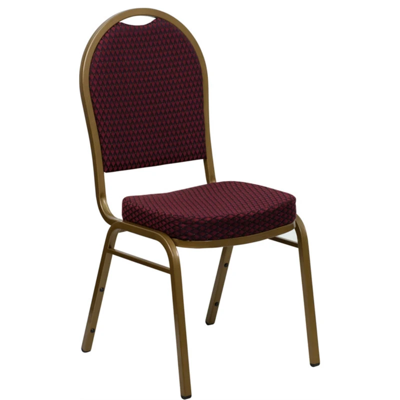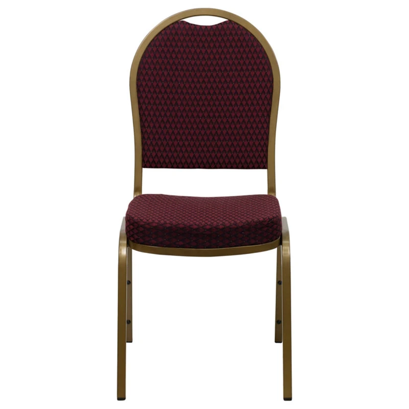 Flash Furniture Dome Back Stacking Banquet Chair In Burgundy Patterned Fabric – Gold Frame