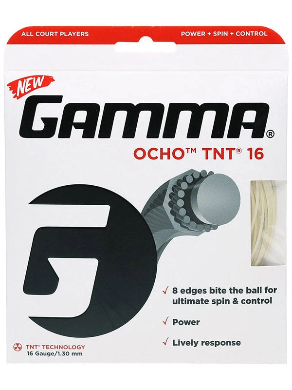 GAMMA Ocho TNTÂ is perfect for the synthetic gut player looking for the spin and control of a polyester string, but who still desires the power and feel of a solid core synthetic.