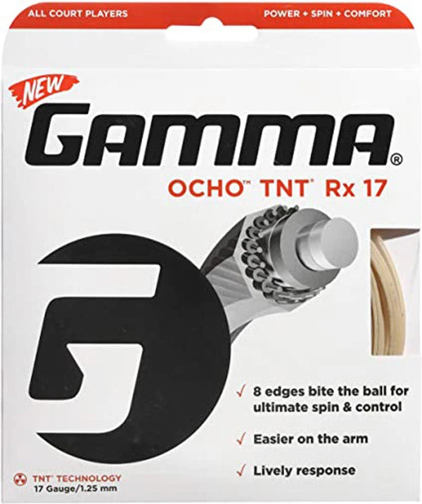 Ocho TNT Rx is the perfect string for the solid core, synthetic guy player that wants to experience the spin and control benefits that a polyester string can provide while retaining the power and feel of a solid core synthetic.