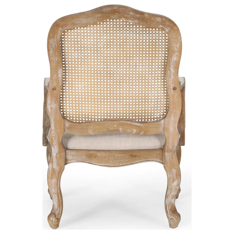 FRENCH COUNTRY INSPIRATION: From graceful cabriole legs to its curvaceous backrests made with cane, this chair set offers a French country inspiration for your home. The elegant armrests and distressed woodwork bring your home together with a classic touch.