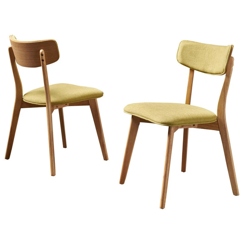 Complete the mid-century modern aesthetic in your dining room with these gorgeous, eye-catching dining chairs. These striking chairs feature soft, upholstered seats and beautifully-finished wood frames. Stunning curves and splayed legs bring even more intrigue and depth to the chic aesthetic. The combination of textures and colors adds dimension to any well-edited space. Fill your dining room with retro charm by pairing these bold and unique chairs with an equally charming dining table, a bold rug, and a coordinating sideboard.