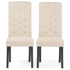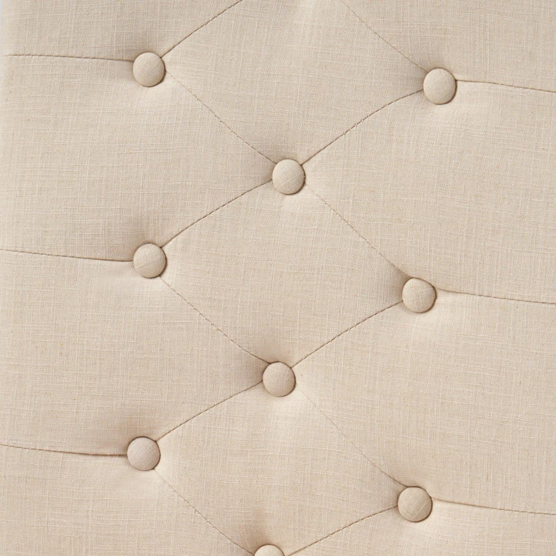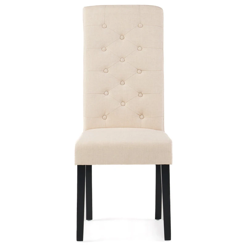 With its tall back and ample tufting, the uniqueness of this dining chair will allow you to welcome it into any room in your home. Complete with soft natural-colored linen, these chairs will suit any preexisting decor.