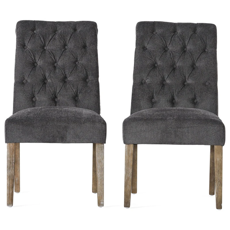 The Elmerson Roll Back Dining Chairs are beautiful, have sturdy construction, and have fully cushioned seat and back, let alone how comfortable they are. These chairs are easy to assemble and will look great even as side chairs in any dining room. A great addition to any home.