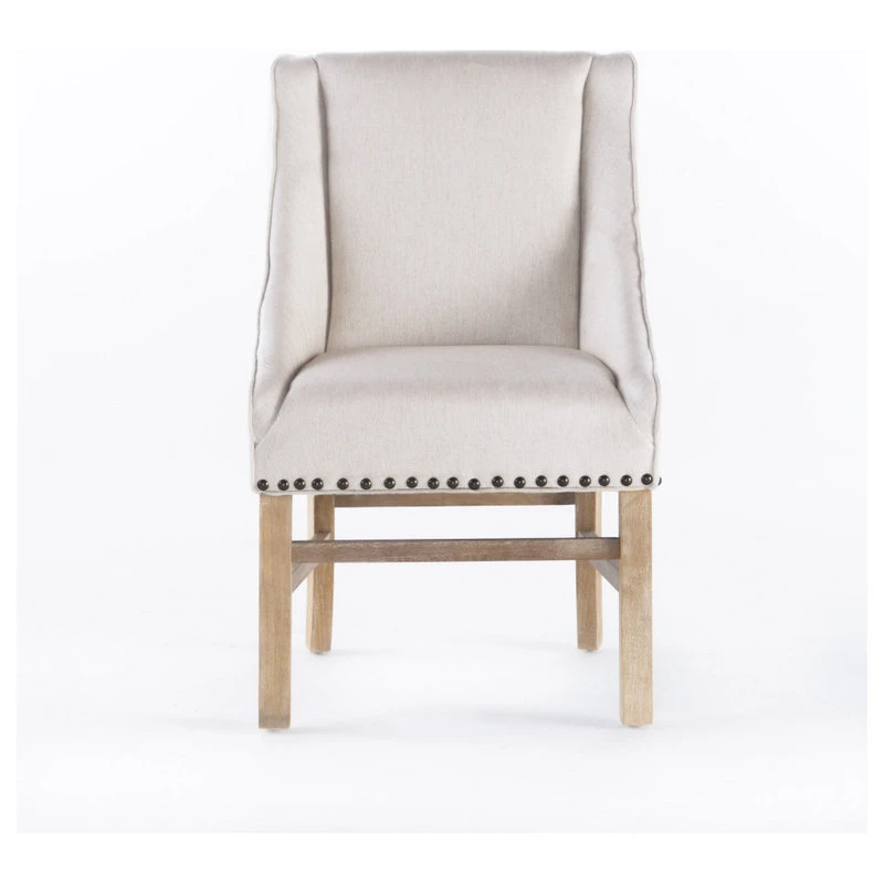 Our eye-catching dining chair is a versatile solution for any home, exceeding all of your needs in both stylish form and function. Featuring an exquisite studded trim, plush upholstered seating, and a sturdy wooden frame for outstanding durability, this chair uses a mix of materials to emphasize the overall contemporary style of the piece. Our refined dining chair is finished with gracefully sloped armrests and a complementing leg finish, making this the perfect balance of stunning style and convenient functionality.