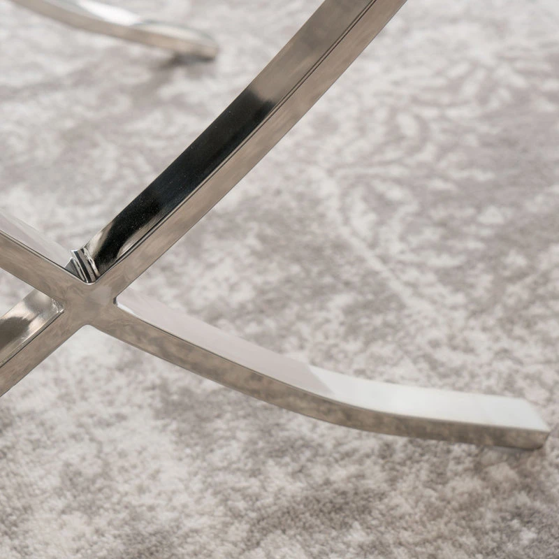 Entertaining your guests is made easy with a set of dining chairs that bring comfort and an air of refinement to your dining set. This set of chairs features gorgeous button-tufted seating and is complemented by smooth waffle stitching. Finished with chic piped edges along its stitching, each chair emphasizes modern design with its careful attention to detail. The dazzling silver X-shaped leg base adds the final touch to this set, bringing a polished looked to any interior space.