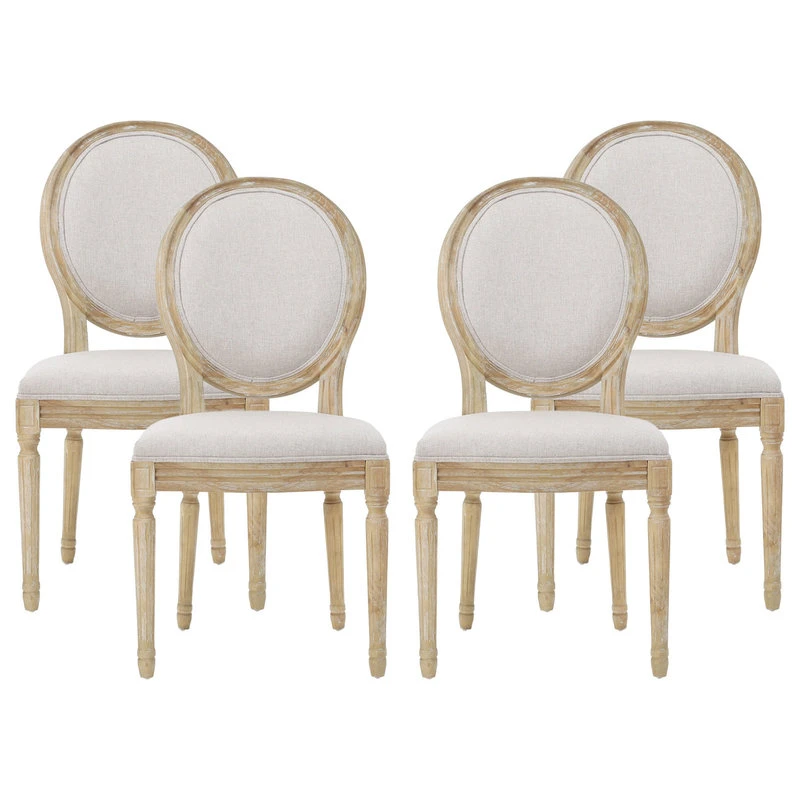 Turn back the clock in your dining room with a set of French country-inspired dining chairs that will bring you and your family back to a simpler, more carefree time. Featuring an iconic round backrest and fluted legs, our upholstered chairs offer your home something a little out of the ordinary while also remaining true to their elegant, old-fashioned roots. Their frames showcase wonderfully contrasting lines and curves that encourage both casual meals with your family or extravagant dinner parties with your guests.