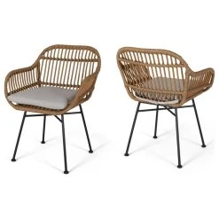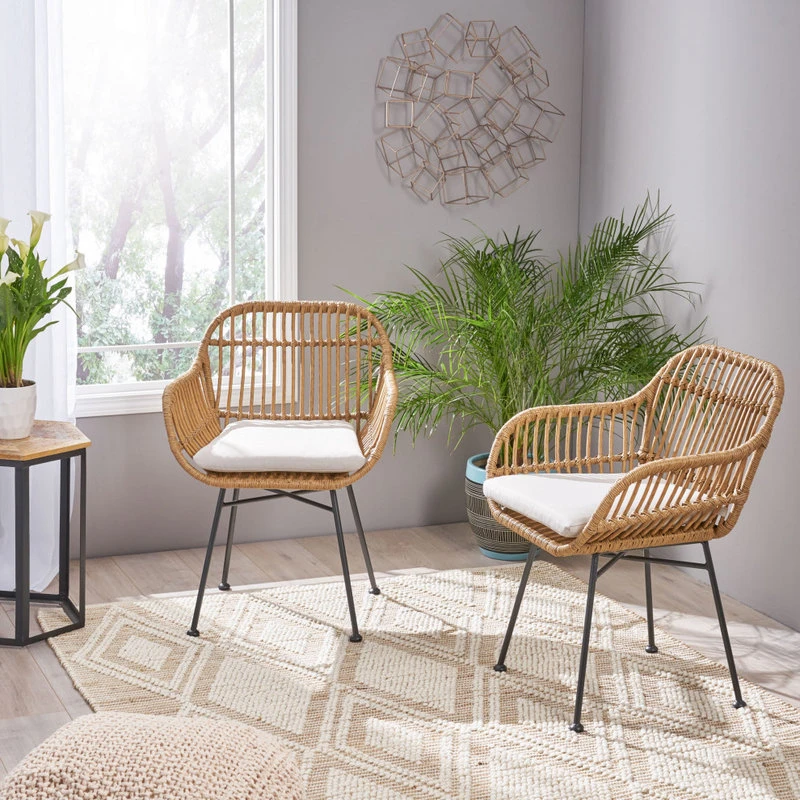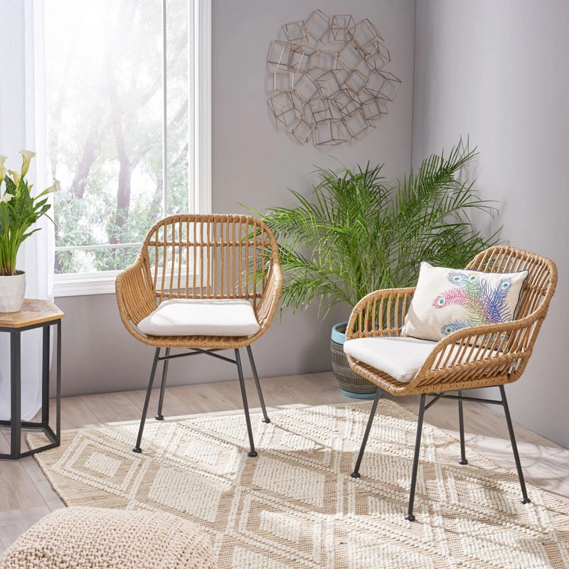 Cozy up in a corner with a good book or carry an intimate conversation with a loved one in the company of our beautiful set of chairs. Featuring a delightful hand-wrapped look, our chair provides a timeless style to your home while providing ultimate comfort. Consisting of a steel frame and rattan material, this charming piece is made to last with its durable structure and intricately crafted finish. Sure to become your favorite spot to relax, our chair set will last you for years to come.