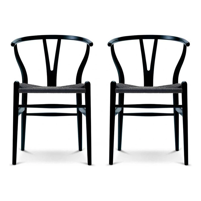Homedotdot Wood Dining Chairs With Open Y Back For Kitchen, Set Of 2, Black
