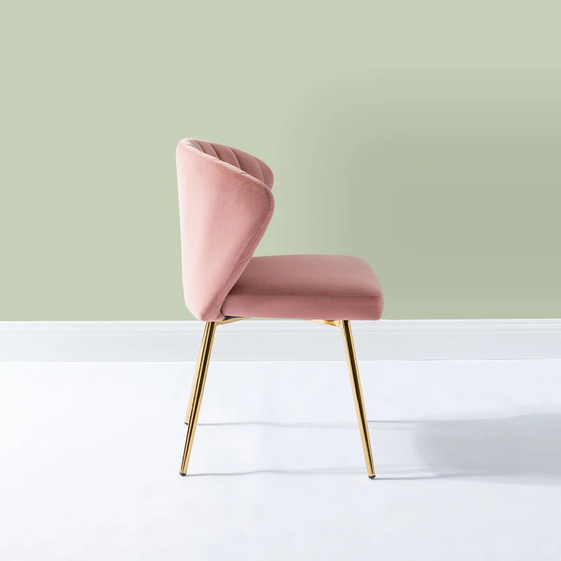 This classic and traditional style accent chair with pleated details is the perfect pick for small space. Whether drawn up to your dining table or rounding out your living room with an extra seat, a small side chair like this is a great option wherever you need it. Made with premium velvet fabric,comfortable for skin touch. High-density foam filling with a solid and manufactured wood frame provide comfort and support.The slender polished gold metal legs bring the modern design,and add to the timeless fashion of this piece.