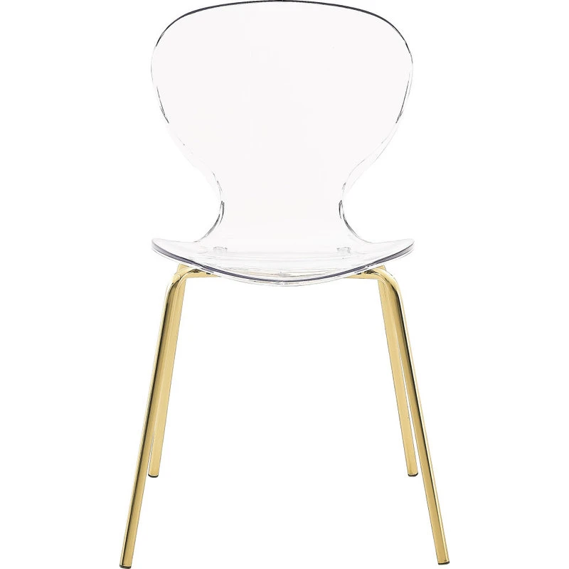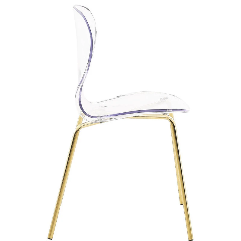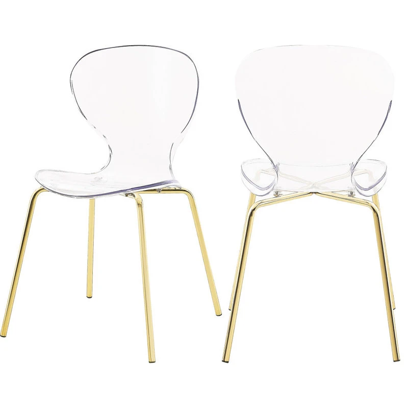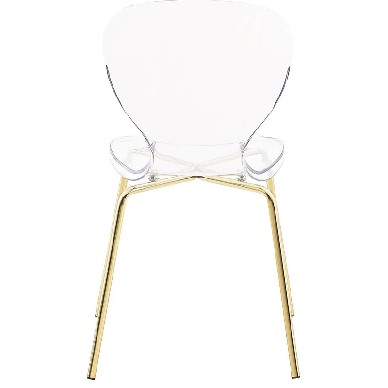 Infuse modernity into your dining room with this Clarion dining chair. A translucent seat and back add a bold and contemporary look to your space while relying on the strength of Lucite polycarbonate to ensure sturdy strength and resilience. A classic metal base with a luxe gold finish contrasts nicely with the translucent top, giving your room a modern vibe that’s hard to ignore yet basic and simple at the same time.