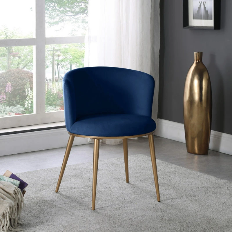 SKU: 965Navy-C Category: Dining Chairs Tags: Brushed gold iron legs, Comfortable, Contemporary, Contemporary design, Elegant, Furniture, Modern, Rounded back, Soft black velvet