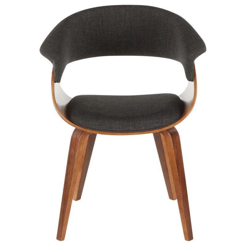 Bend the rules and break the mold with the Antonia. A swanky showstopper in the den or the dining room, this mid-century chair will have your guests doing double-takes as soon as they walk in. Curved wood accented by a fabric, cushioned seat and wraparound backrest offer both comfort and style. Stylishly exposed bolts and arched walnut legs round out its look to make for a unique piece that’s nothing short of a knockout.