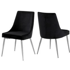 MOD The Draper Dining Chair, Black, Velvet, Chrome Base, Set Of 2