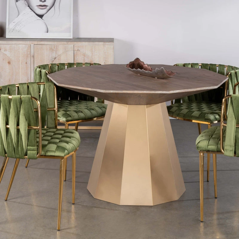 Looking for something truly new and “wow”-worthy? The Eterno dining chair is at your service. Its elegant, gold-finished frame peeks in and out of its woven, thick-cut velvet upholstery. This work of art is stylish, elevated, and above all comfortable thanks to its curved back and cushioned seat. To make a statement your guests won’t soon forget, make way for the Eterno.