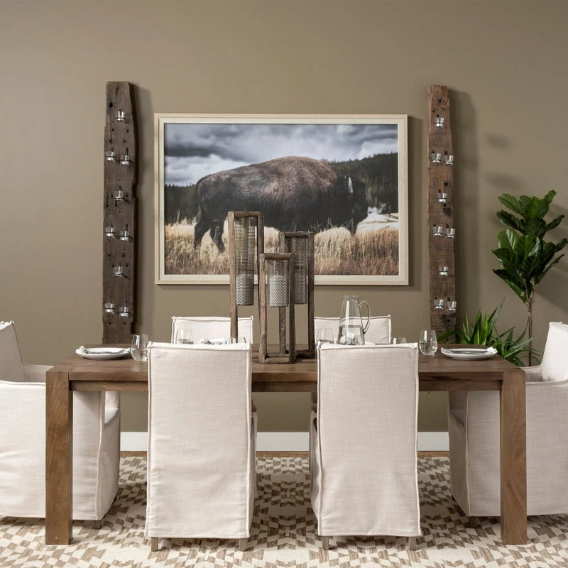 - Plush Fabric Wrap: The chair is wrapped in plush cream-toned fabric, makes for a comfortable as well as a visually enticing addition to any dining room