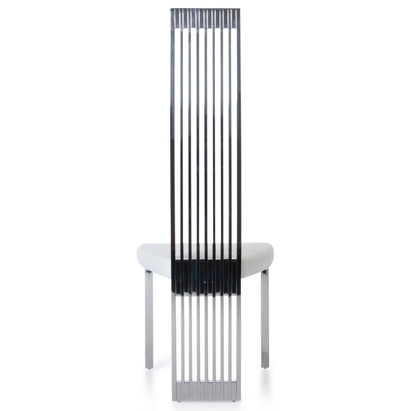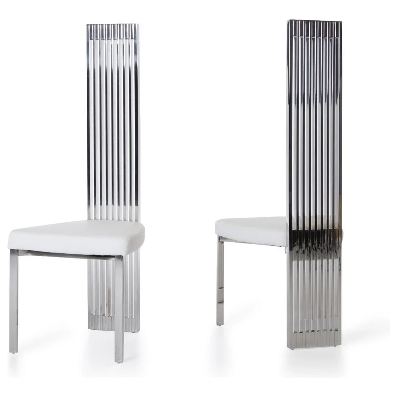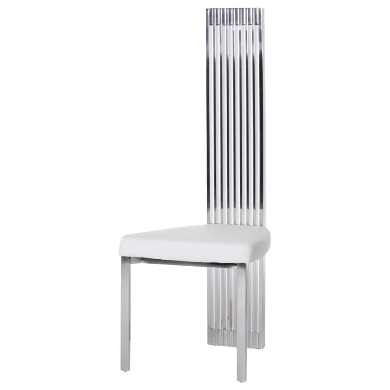 Revel in modern elegance with the Millenium dining chair. Forged from stainless steel and layered with luxe leatherette, this unique seat epitomizes contemporary chic in a way your guests will surely appreciate. Sleek lines anchor its two sturdy front legs, guiding the eye up through its towering seat back. From date nights to dinner soirees, the Millennium’s innovative design will elevate any dining experience all while offering the plush comforts of home (and a little dramatic flair).