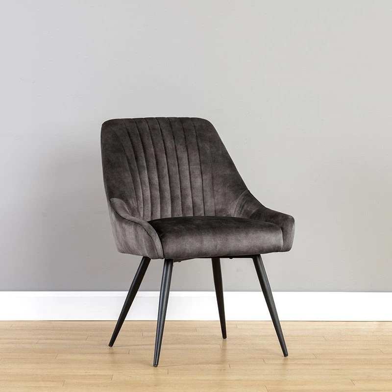 Add a touch of gold glamour to your space with the Remi Dining Chair. This midcentury charmer emits a cool, loungey aura. The channel tufted back and angled black iron legs bring intrigue to this artfully inviting design. Kick back, pour yourself a strong one, and revel in the good times in style.