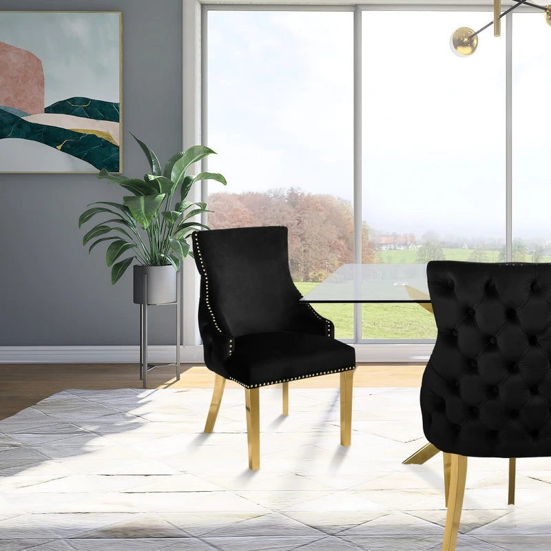 Introducing: its majesty, the Sovereign dining chair. It’s no question that when it comes to dining royalty, this chair is the last word in luxury. With a cushioned seat and gold nailheads that trace the perimeter like a dazzling crown, it’s no wonder it reins supreme. Revel in the tufted back and enjoy not one, but two, plush and polished pieces to consider your in-home thrones.