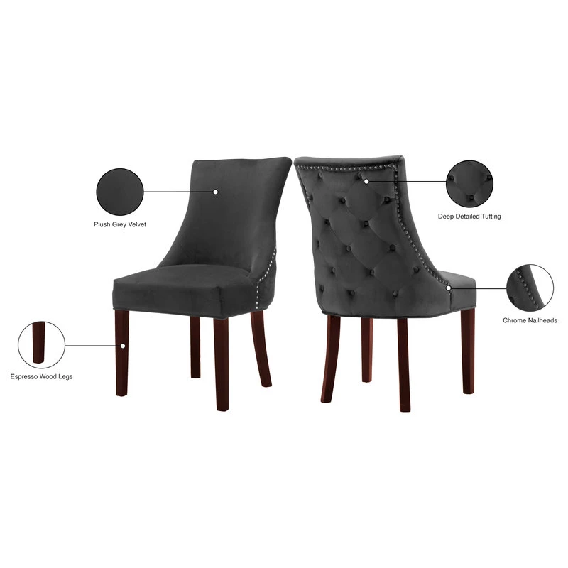 Want to spruce up your dining space? This contemporary chair does the trick, and then some. Velvet upholstery envelopes the Splendor’s simple, contoured silhouette, making it both soft to the touch and easy on the eyes. A curved, high back and plush-cushioned seat provide support in all the right places. Plus, deep tufting and chrome nailheads adorn the back, letting it stand out at any angle. Not only does it tie any room together, it’s also a breeze to put together—all you have to do is attach the legs.