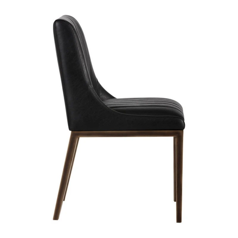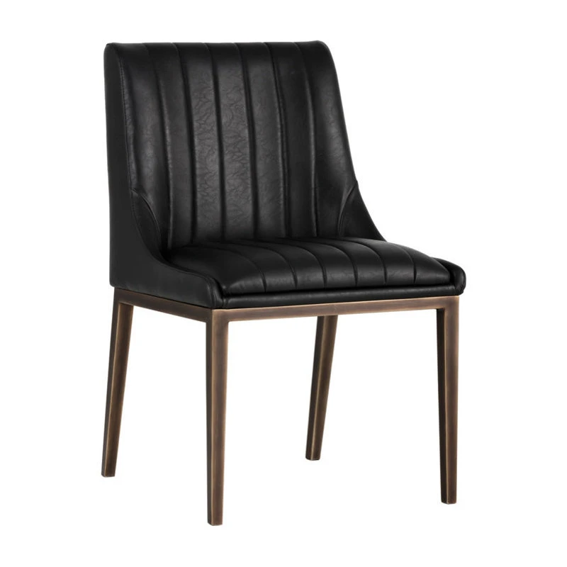 Imported from a distant memory, the Stanton is here to evoke simpler times. Reminisce in the casual comfort of its padded back and seat complemented by upscale upholstery. Vertical ribs stretch throughout, offering vintage style from any vantage point. Below, angular, bronze-colored legs solidify its mid-century roots with sturdy sophistication. Whether you’re serving up new memories at the dinner table or burning the midnight oil at the home office, there’s no standby quite like the Stanton.