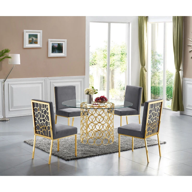 MOD The Weaver Dining Chair, Gray, Velvet, Gold Base Set Of 2
