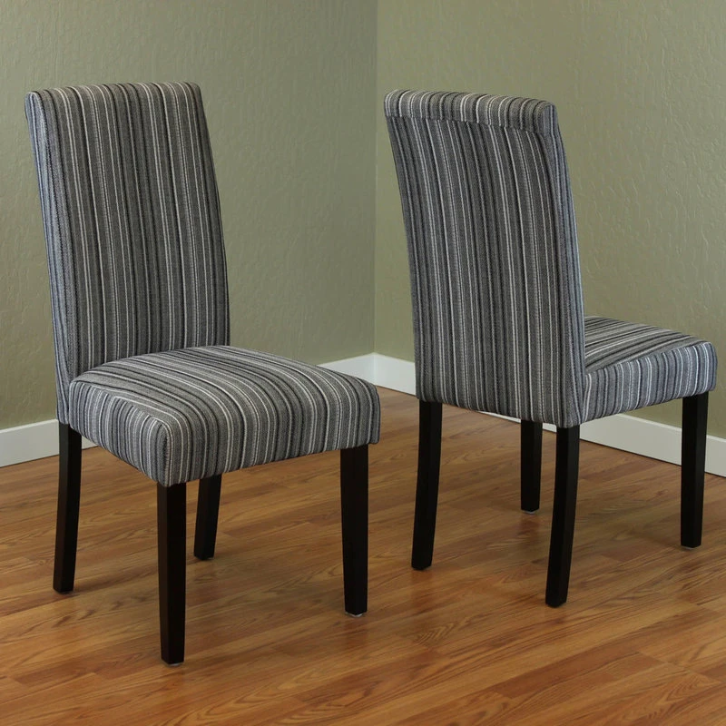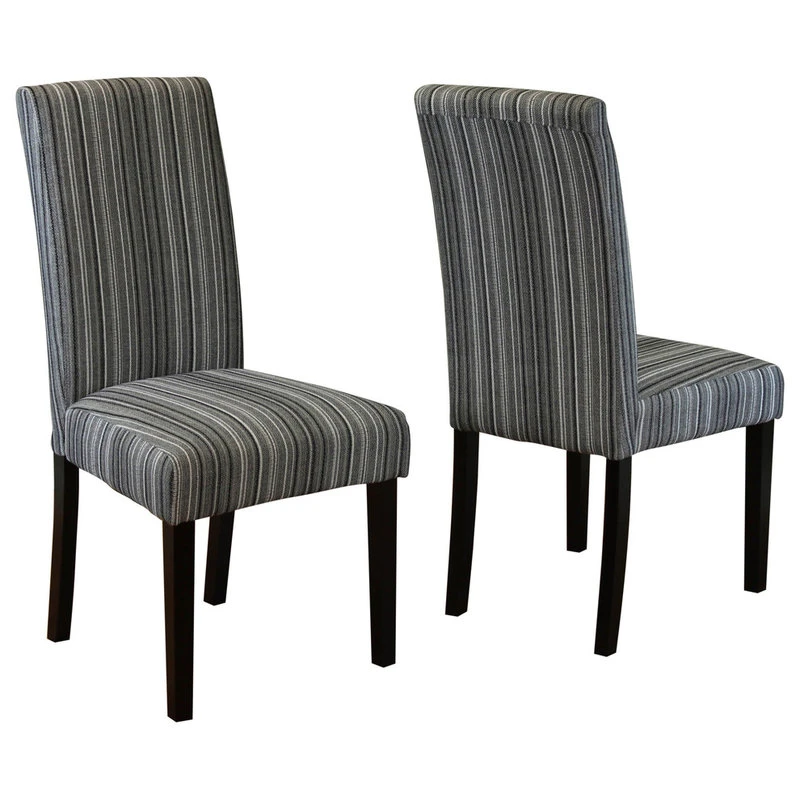Wine and dine in the trendy high back design of the Seville Stripe Dining Chairs. Sold as a set of 2, these transitional seats will complement your dining room table and provide a comfortable spot to sit in for hours. Crafted of durable wood and upholstered in stripped linen, the Seville Stripe Dining Chairs are guaranteed to create a chic flair that will enhance your everyday style.