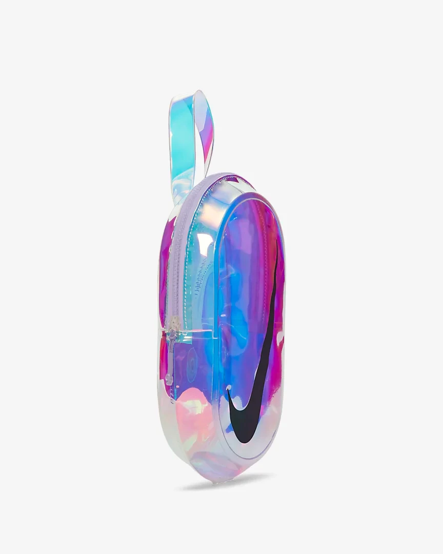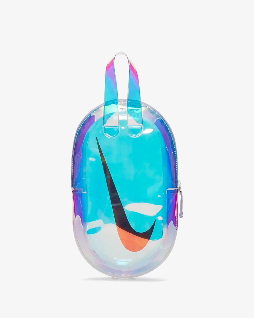 The Nike Locker Iridescent Swim Bag is made with clear material so you to find your items easily. The perforations help items ventilate and drain after swimming. It has a 3-liter capacity to hold your swimming gear before and after practice.