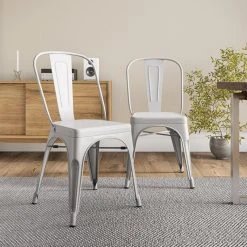 Belleze Trattoria Dining Chair, Metal, Stackable, Set Of 4, White