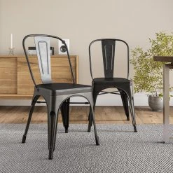 Belleze Trattoria Dining Chair, Metal, Stackable, Set Of 4, Black