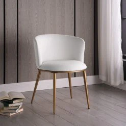 MOD The Almar Dining Chair, White And Brushed Gold, Faux Leather And Iron, Set Of 2