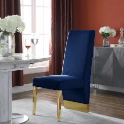 MOD The Almar Dining Chair, Navy And Brushed Gold, Velvet And Iron, Set Of 2
