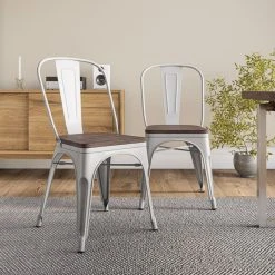 Belleze Wood Seat Metal Dining Chairs, Set Of 4, White