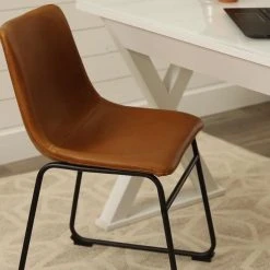 Walker Edison 18″ Faux Leather Dining Chair 2 Pack, Whiskey Brown