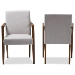 Baxton Studio Andrea Mid-Century Modern Grayish Beige Upholstered Wooden Armchair, Set Of 2
