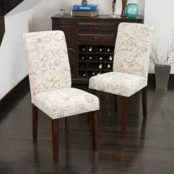 GDFStudio GDF Studio Script Printed Linen Dining Chairs, Set Of 2
