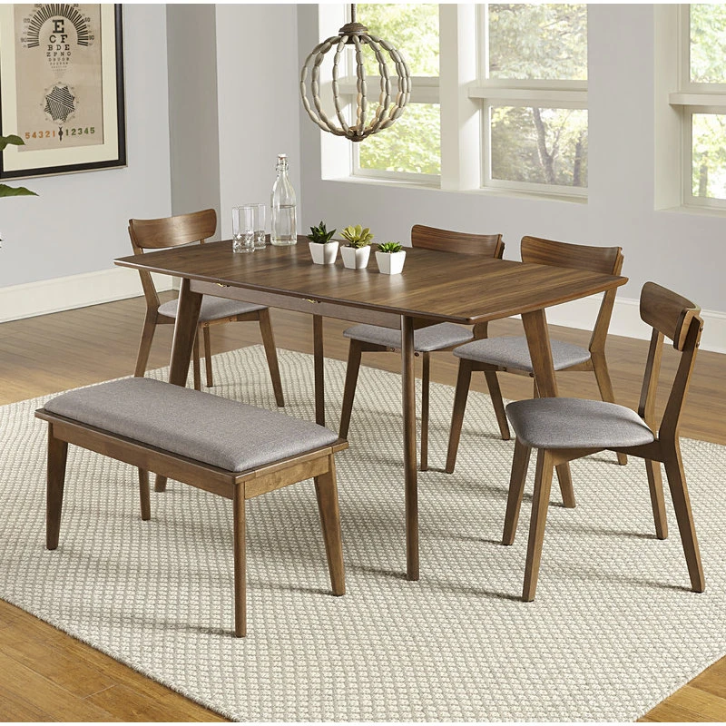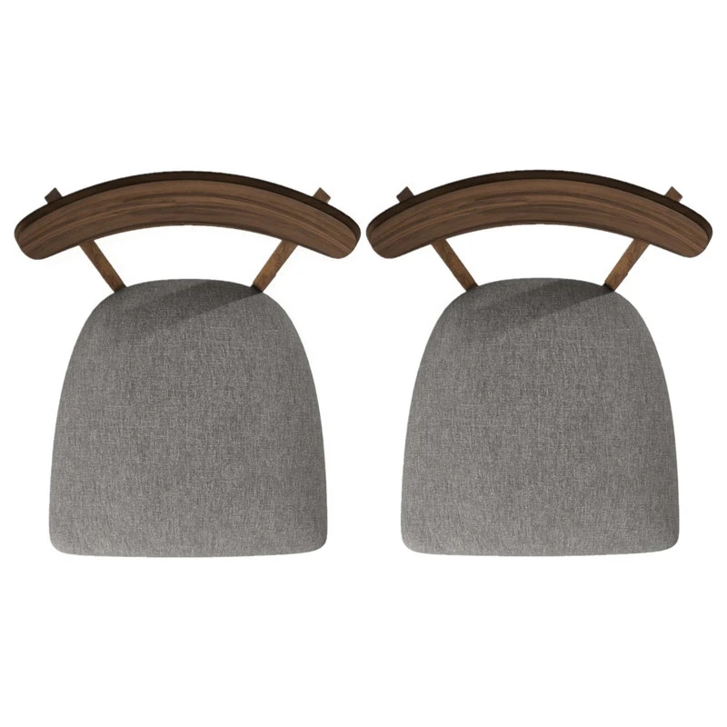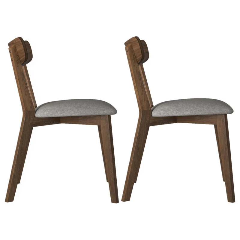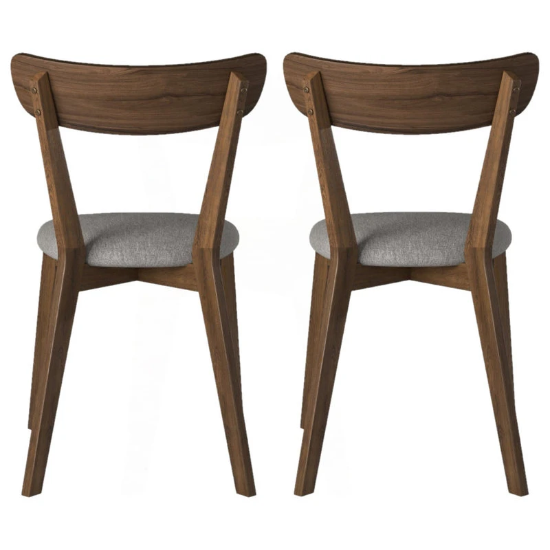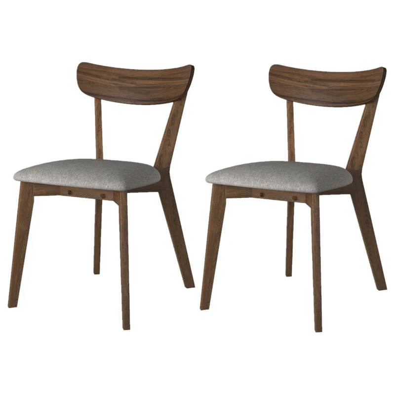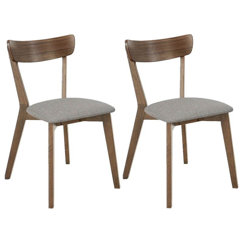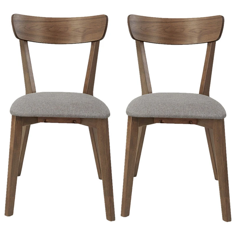 The Chairs are Rubberwood with gray upholstered seats. Warm Walnut finished frame. Simple line design creates a clean look.