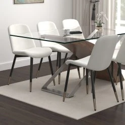 Zuri Furniture Modern Norma Dining Chair – White With Polished Stainless Steel Base