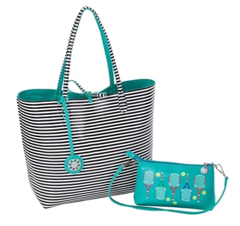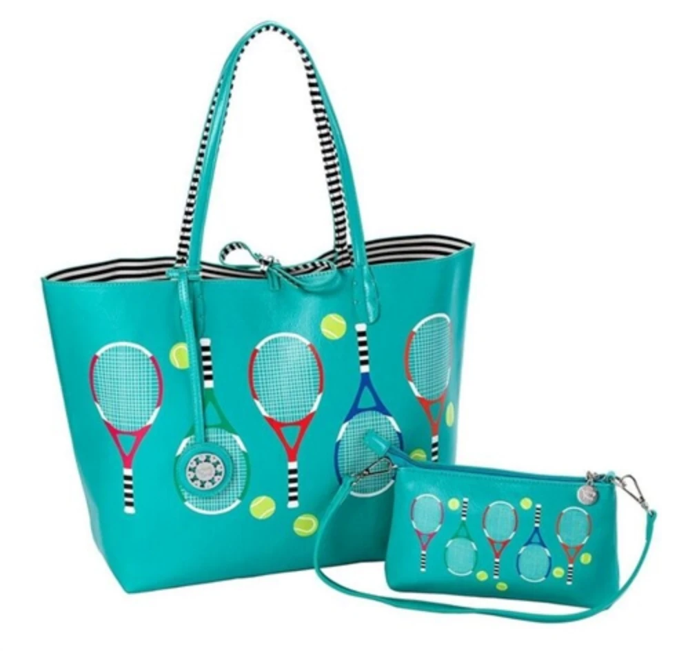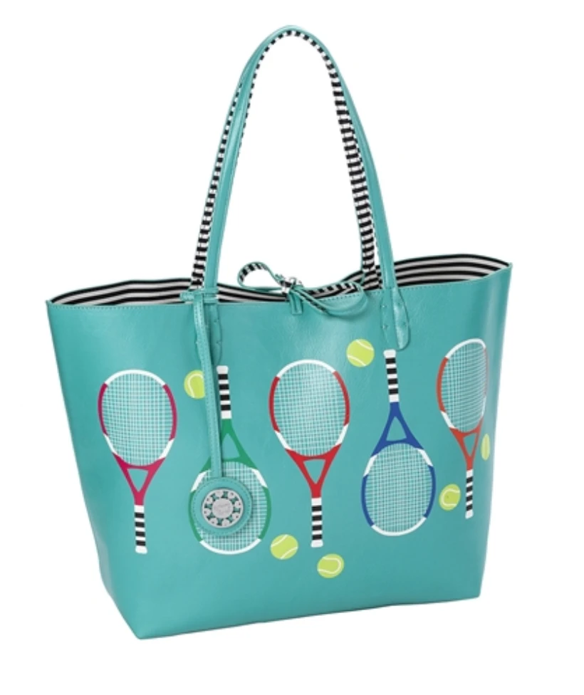 TENNIS INC Tennis Themed Reversible Tote-Turquoise