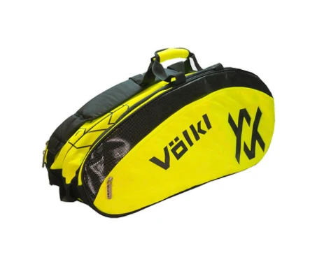 Keep calm and Carry your tennis gear in style with the Volkl Tour Combi Bag. This bag offers ample room, durable materials, and comfortable carrying capabilities. Store from 6 to 9 of your favorite tennis racquets in the two larger sections and smaller gear you’ll need for your next practice or match in the zippered sections on the outside.