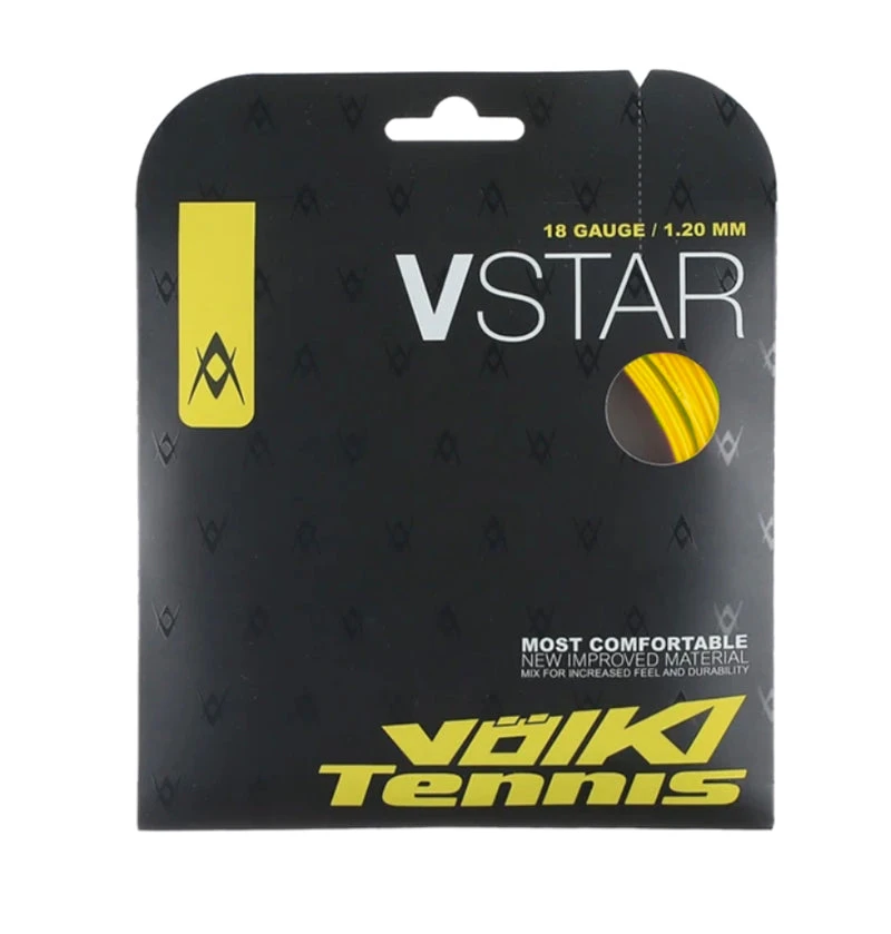 The Volkl V-Star features advanced co-polymer technology. Providing outstanding durability and tension hold, combined with excellent response time of the racquet, second only to natural gut.
