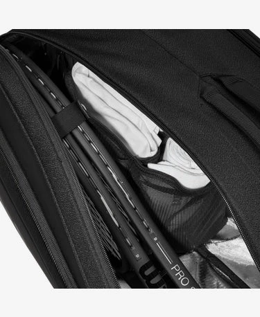 - 2 Main compartments for equipment (up to 12 rackets) and apparel
