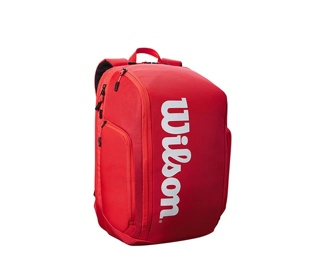Superior quality, tennis-oriented functionality and classic design collide: introducing Wilson’s latest Super Tour bag collection. This bag comprises two main compartments that hold up to 6 rackets, two large exterior side pockets and a dual carry system for optimal transportation. New to the line are reinforced side panels, which provide extra durability at spots that typically rip first. Tennis players will also appreciate the Thermoguard lining in one main compartment that protects contents wilting from extreme heat.