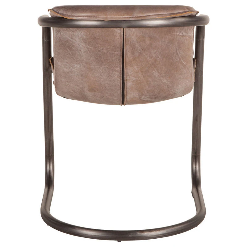 Our Chiavari collection of retro-inspired chairs and sofas will add vintage charm to your dining room, kitchen, or living room. The distressed jet brown leather seat has a soft feel for ultimate comfort, while the exposed trim provides vintage flair. The U-shaped steel frame and legs in rustic, brushed gunmetal finish includes levelers with caps to protect all types of flooring. Combine with your favorite dining or kitchen table for a casual dining space, pair with a modern desk for a stylish work space, or adjoin with a side table for a comfortable cocktail and reading nook. This pre-assembled dining chair is ready-to-use and of the finest quality, and with its classic design and elegance, it will make an effortless addition to any home.