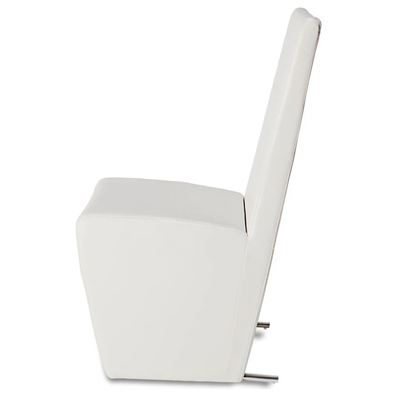 Create a statement with the sophisticated and modern Boston Dining Chair. Its formal and supportive high seat back is designed for comfort and visual appeal. The Boston is beautifully finished with high-quality leatherette for easy cleaning and includes unique polished tubular stainless steel legs on the back. Available in your choice of Black, Brown, White, Cream, Dark Grey, Taupe, Red, and Dark Blue. There’s a perfect color for every setting with the Boston dining chair collection. The suggested weight capacity is 220 lbs.